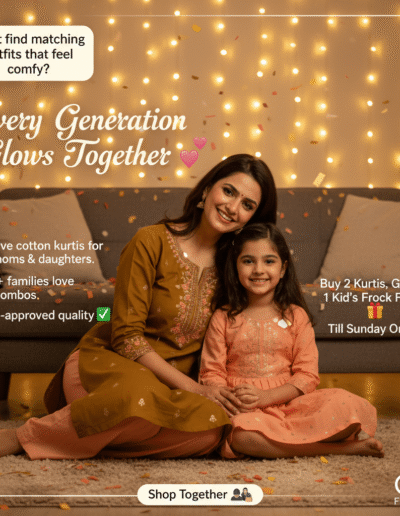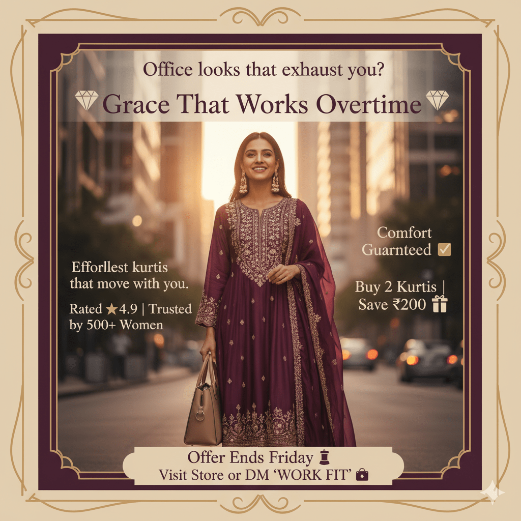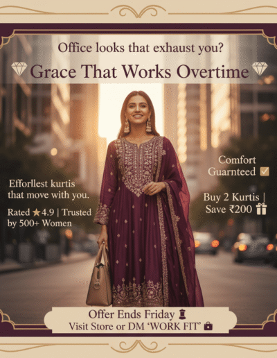 Offer Post → “Buy 1 Get 1 Free Kurtis — Valid Only This Weekend!”