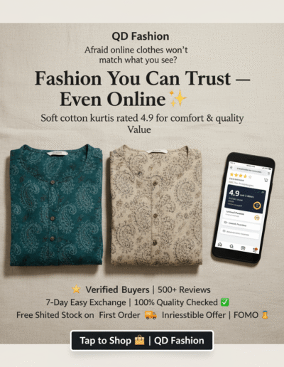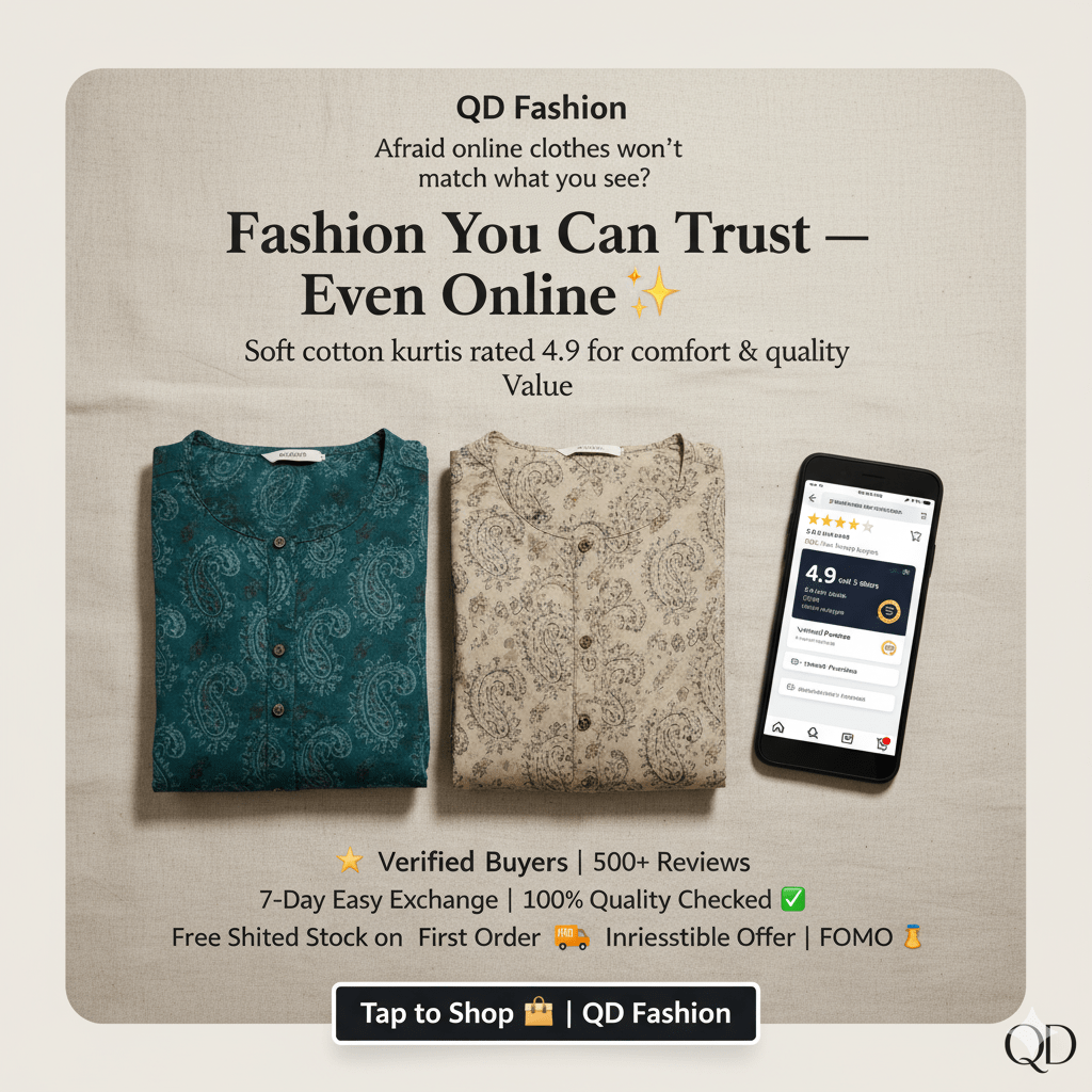 Customers who already know QD Fashion through Amazon, Flipkart, or WhatsApp. They follow for updates on new stock, combos, and weekend offers.